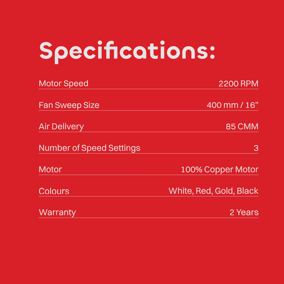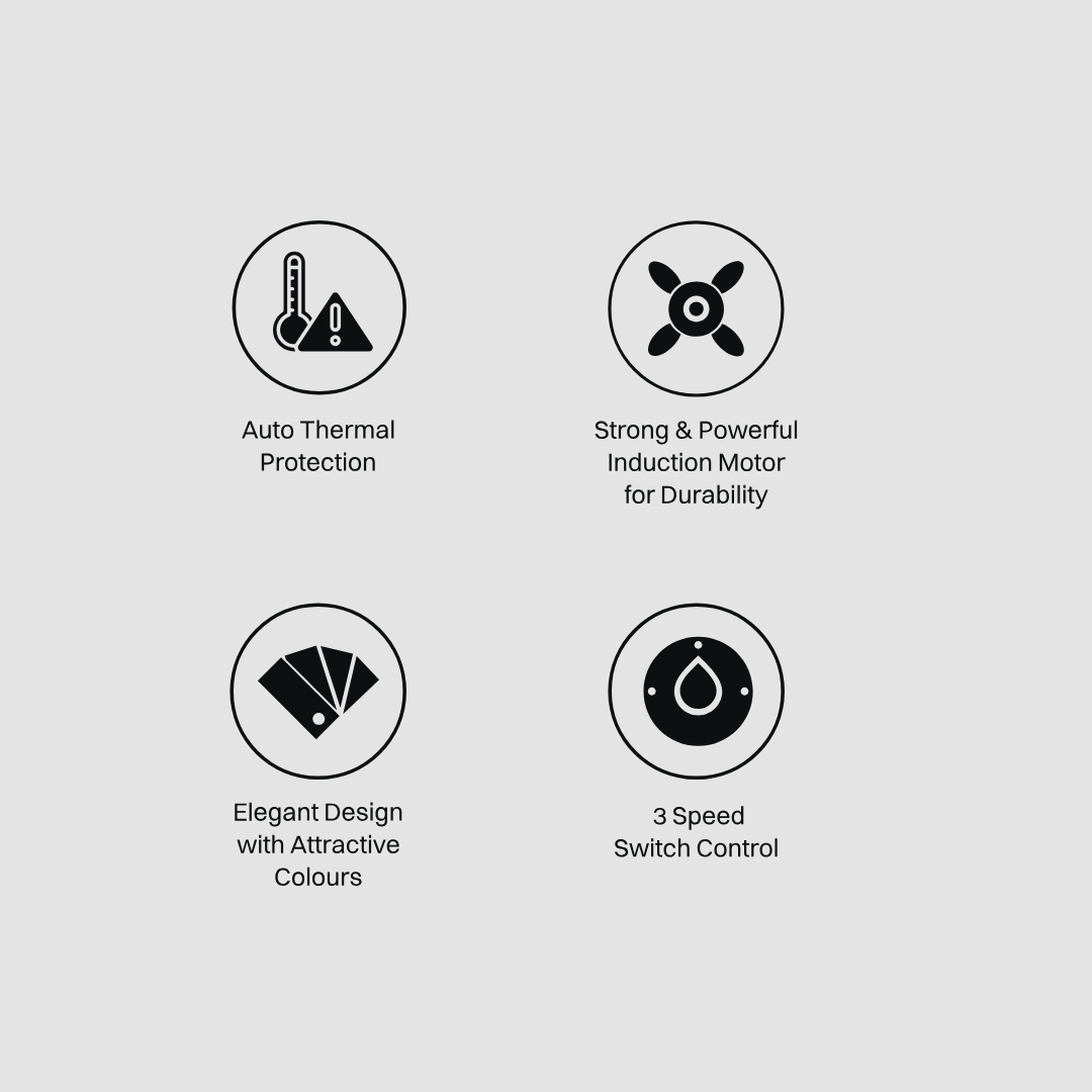 Elegant Design with Attractive Colours, Auto Thermal Protection to Protect Motor During Thermal Overloading, Available Colours: White, Blue, Golden, Black